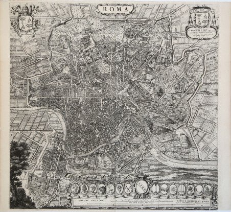 Facciata della ' Chiesa di Santa Maria ai Monti. Acquaforte, stampata su carta vergata coeva, buone condizioni. Poco si sa di Regnard, se non che fu un incisore francese che trascorse gran parte della sua vita lavorativa a Roma realizzando belle incisioni dei magnifici edifici e delle antichità. Quest'opera di Regnard fu pubblicata a Roma da Francois Collignon nel 1650, senza titolo, ma in un insieme noto come ' Praecipua urbis templa. Le tavole mostrano prospetti, sezioni e piante di chiese romane del XVI e XVII secolo, con didascalie che le identificano e i loro architetti (con occasionali attribuzioni errate). Includono lavori di Carlo Maderno, G. della Porta, F. da Volterra, la famiglia Longhi, G.B. Soria e molti altri. Rara. Chiesa di Santa Maria ai Monti. Etching, printed on contemporary laid paper, good condition. Little is known about Regnard, except that he was a French engraver who spent much of his working life in Rome making fine engravings of the magnificent buildings and antiquities. This work by Regnard was published in Rome by Francois Collignon in 1650, without a title, but in a set known as ' Praecipua urbis templa. The plates show elevations, sections and plans of 16th- and 17th-century Roman churches, with captions identifying them and their architects (with occasional misattributions). They include work by Carlo Maderno, G. della Porta, F. da Volterra, the Longhi family, G.B. Soria and many others. Rare. Cfr.