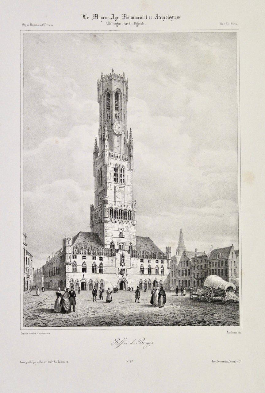 Litografia, mm 270x198 su foglio di mm 430x290; in basso a sinistra: "Latteux desinè d'apres nature/Paris pubblié par A. Hauser boul. des Italiens, 11; in basso a destra: "Asselineau lith./Imp. Lemercier Bernard et C". <BR>Tratta da una corposa raccolta di vedute dal titolo "Le Moyen Monumental et Archéologique" eseguita su proprio disegno da Chapuy e litografata da A. Guesdon. Bell'esemplare. Timbrino editoriale a secco in basso sotto il titolo. Chapuy architetto del Corpo di Genio francese a causa del suo bonapartismo, dopo il 1815 dovette orientarsi verso una nuova attività. Grazie alle sue abilità grafiche-artistiche si dedicò alle illustrazioni di paesaggi e monumenti, lavorando su commissione dapprima per editori che legati al campo dell'archeologiae, dopo il 1823 alle pubblicazioni per i libri di viaggio.