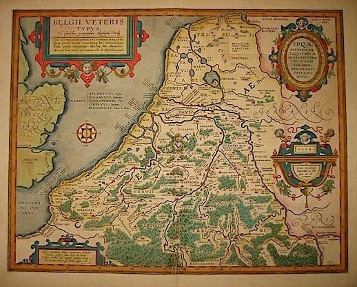 Carta geografica originale (cm.49x38,5 più buoni margini). Splendida coloritura coeva all’acquerello. Minuscole mancanze lungo la piegatura centrale altrimenti ottimo esemplare. Van den Broecke, 198.
