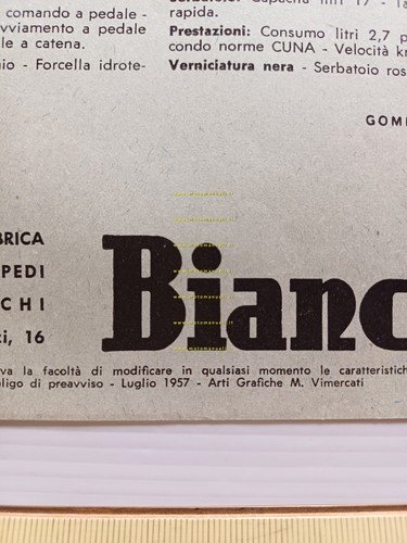 Bianchi Tonale 175 Gran Turismo 1957 depliant italiano originale