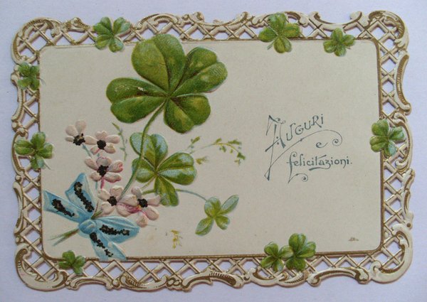 Biglietto augurale traforato e in rilievo "Auguri e felicitazioni". Fine´800, primi ´900