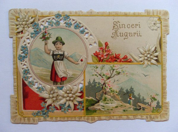 Biglietto augurale traforato e in rilievo "Sinceri Auguri". Fine´800, primi ´900
