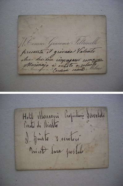 *Biglietto da visita manoscritto Comm. GIACOMO FELTRINELLI