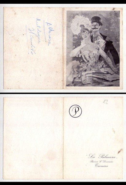 Biglietto pubblicitario "LA PALMARA" Piazza S. Domenico - Taormina. Primi'900
