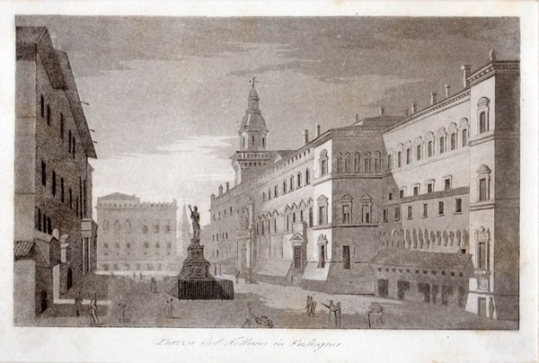 BOLOGNA - Piazza del Nettuno in Bologna. veduta della piazza del Nettuno con il Palazzo Comunale sulla destra e palazzo dei Notai frontale.