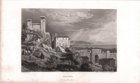 Veduta pubblicata nell’opera ' Carl Frommel’s pittoreskes Italien… ' edita a Lipsia nel 1840. Pittore e incisore di Scuola tedesca, Frommel dopo aver visitato l’Italia, si ferma in Germania e diventa professore di pittura e di incisione a Carlsruhe; in seguito, si reca in Inghilterra dove apre un atelier di incisione. ' Acquaforte, in ottimo stato di conservazione. View from ' Carl Frommel’s pittoreskes Italien… ' published in Leipzig in 1840. Painter and engraver of the German School Frommel, after visiting Italy, stayed in Germany and became a professor of painting and engraving in Carlsruhe; he then went to England where he opened an engraving studio. ' ' Etching, in very good condition. Cfr.