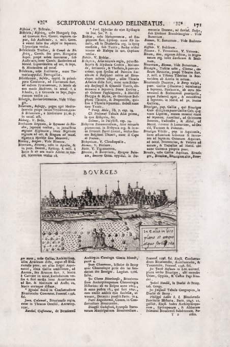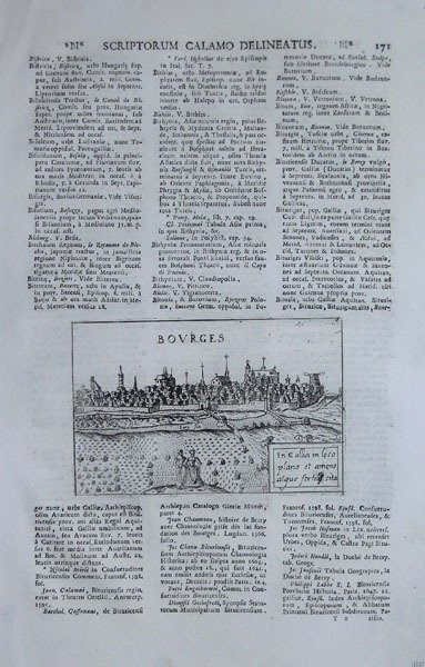 Veduta pubblicata per la prima volta nella serie La Raccolta di le piu illustri et famose citta di tutto il mondo, edita da Francesco Valegio a Venezia verso la fine del '500, che comprende circa 322 piante e vedute delle principali città del mondo conosciuto. Di questo volume, si conservano diversi esemplari, tutti con numero variabile di incisioni e privi di un indice a stampa. Inoltre, gran parte delle tavole contenute nella raccolta del Valegio furono inserite nella Nuova raccolta di tutte le più illustri et famose città di tutto il mondo, curata da Donato Rasciotti, edita alla fine del sedicesimo secolo. Tuttavia, è persino incerto quale delle due raccolte venne per prima alla luce ed ignote sono le datazioni di tutte le tirature conosciute. Francesco Valegio nasce a Bologna circa nel 1560, anche se alcuni studiosi gli accreditano un’origine veronese; la sua attività di incisore ed editore calcografo si svolge tutta a Venezia, spesso in associazione con altri stampatori. Le tavole che compaiono nelle Raccolta, che senza dubbio possiamo considerare come la sua opera più importante, sono tutte prive di data, ad eccezione di quelle di Algeri, Costantinopoli e Rodi, firmate da Martino Rota, datate 1572. Le piante e le vedute firmate dal Rota, incisore nativo di Sebenico e attivo a Venezia fino al 1573, costituiscono, senza dubbio, il nucleo più antico dell’opera e fanno ritenere che questa sia stata un progetto editoriale iniziato proprio dall’incisore dalmata. In un primo momento, la presenza di queste tavole aveva portato a datare l’opera al 1579, data che sembra tuttavia molto improbabile. Molte delle immagini riprendono modelli figurativi apparsi nei primi volumi del Civitates Orbis Terrarum, editi tra il 1572 ed il 1588 (e successivamente ristampati sino al 1617) dai cartografi Georg Braun e Franz Hogenberg. Pertanto, è molto più plausibile che il Valegio iniziò verso il 1580 ad osservare le tavole incise da Martino Rota, per poi ampliare e pubblicare la raccolta, nell’ultimo ventennio del secolo. Dell’intero corpus di incisioni che compongono l’opera, 112 recano la firma o la sigla del Valegio, altrettante sono assimilabili alla mano dello stesso, mentre 69 sono ascrivibili ad altro artista, non identificato. Questo esemplare è tratto dall'opera ' Universus terrarum orbis scriptorum calamo delineatus . qui de Europae, Asiae, Africae, & Americae regnis, provinciis, populis, civitatibus. pubblicata a Padova nel 1713, presso Matteo Cadorin, da Raffaello Savonarola, sotto lo pseudonimo di Lasor a Varea (o Varela). L'opera era una sorta di enciclopedia che conteneva notizie sulle varie località del mondo disposte in ordine alfabetico, arricchita da mappe e vedute di tutto il mondo che appartengono a celebri raccolte cartografiche del passato – Bertelli, Valegio, Camocio, Bonifacio, Nelli, Magini e altri – del quale probabilmente l’editore Cadorin era in possesso delle matrici originali. Incisione su rame, ampi margini, in ottimo stato di conservazione. La Raccolta di le piu illustri et famose citta di tutto il mondo, published by Francesco Valegio in Venice towards the end of the XVI century, containing about 322 plans and views of the main cities of the World. There are different examples of this work, every one with a different number of plates and without an index. Many of these plates have been afterwards included in Donato Rasciotti's Nuova raccolta di tutte le più illustri et famose città di tutto il mondo, printed at the end of the XVI century. It is still, however, quite unclear whether Valegio or Rasciotti published first his collection. Francesco Valegio was born in Bologna around 1560, even though some say he might have been born in Verona; as engraver and calcographer, he worked in Venice, very often in association with other publishers. The plates of his series, which can be considered his most important work, do not bear any date, except for those of Algeri, Costantinopoli and Rodi, signed by Martino Rota, dated 1572. The city plans signed by Rota, (engraver born in Sebenico who worked in Venice until 1573), are the most ancient core of the work, which make us think that this work has been planned by Rota himself. Many plates recall the figurative models of the Civitates Orbis Terrarum printed between 1572 and 1588 (afterwards reissued until 1617) by Georg Braun and Franz Hogenberg. It is possible that Valegio started to select the plates by Rota around 1580 and afterwards enlarged his collection at the end of the century. 112 plates bear Valegio's signature or monogram and as many can be ascribed to him; 69 have been ascribed to an unkwown artist. The collection was extremely successful and became the base for the following copies. ' This example is taken from the work ' Universus terrarum orbis scriptorum calamo delineatus . qui de Europae, Asiae, Africae, & Americae regnis, provinciis, populis, civitatibus. ' published in Padua in 1713, at Matteo Cadorin, by Raffaello Savonarola, under the pseudonym of Lasor a Varea (or Varela). The work was a kind of encyclopedia containing news about the various localities of the world arranged in alphabetical order, enriched with maps and views of the whole world belonging to famous cartographic collections of the past-Bertelli, Valegio, Camocio, Bonifacio, Nelli, Magini, and others-of which the publisher Cadorin probably possessed the original plates. Copper engraving, in excellent condition. ' Very rare. Cfr.