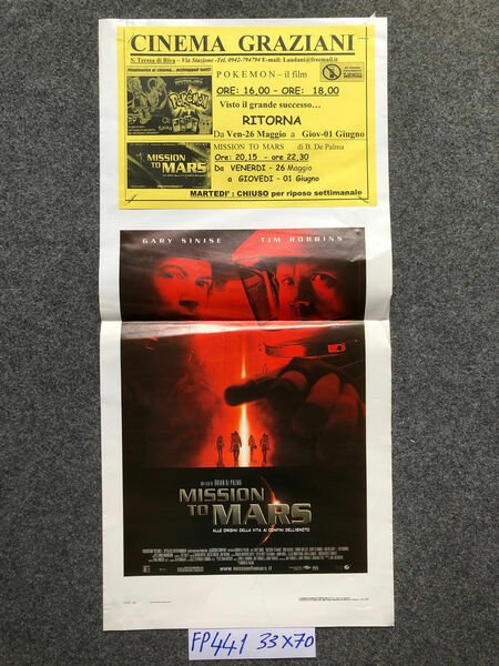 Brian De Palma Mission to Mars Tom Jacobson Con Garry Sinise e Tim Robbins. Nello spazio superiore della locandina viene presentata la pubblicità di altro film in programmazione nella sala cinematografica (49f).