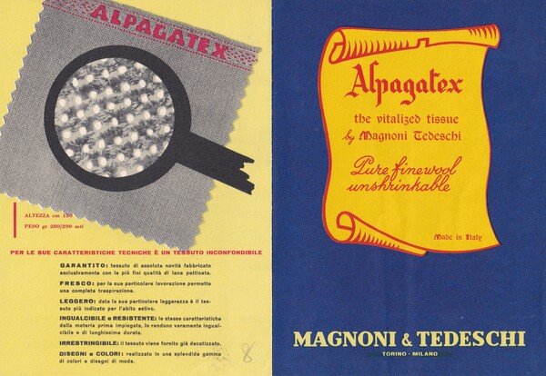 Brochure ALPAGATEX (tessuto estivo in pura lana) - Magnoni & Tedeschi Torino-Milano