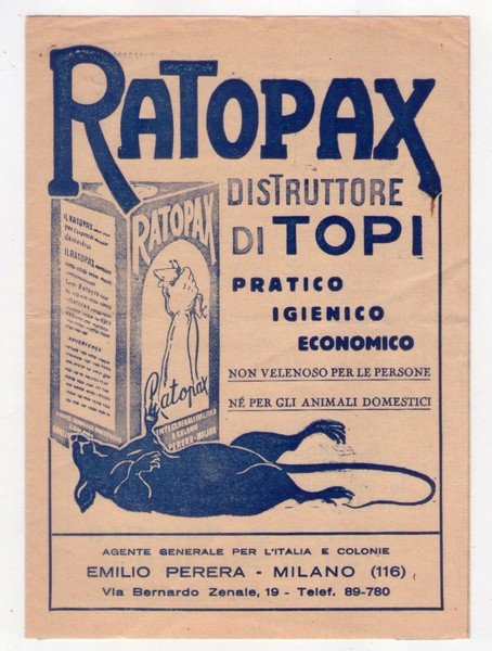 Brochure con istruzioni + volantino in velina RATOPAX distruttore di topi.