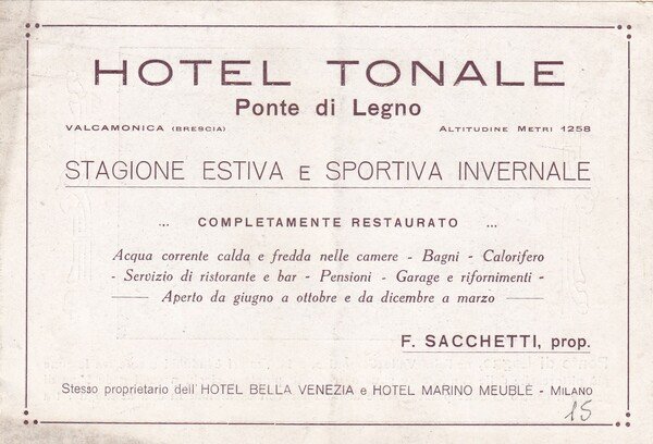 Brochure Hotel Tonale - Ponte di Legno. (Valcamonica - Brescia). 1928