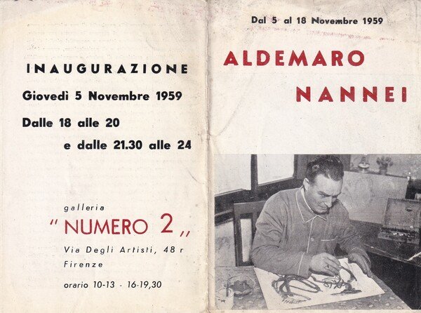 Brochure mostra ALDEMARO NANNEI - 1959. Galleria "Numero 2" - Firenze