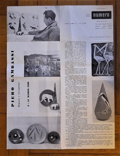 Brochure pieghevole 148° mostra PIERO GAMBASSI Dipinti e Ceramiche 3-14 marzo 1956. Galleria NUMERO