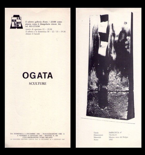 Brochure pieghevole mostra YOSHIN OGATA Scultore. Il Salotto Galleria d'Arte dal 5 dicembre 1982.