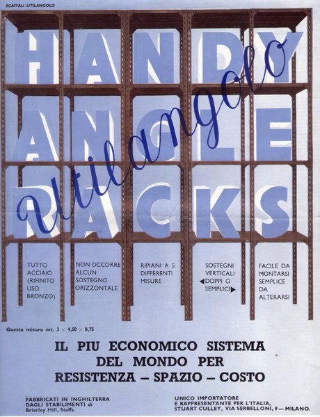Brochure Scaffali UTILANGOLO - Handy Angle Racks. Importato da Stuart Cullet - Milano