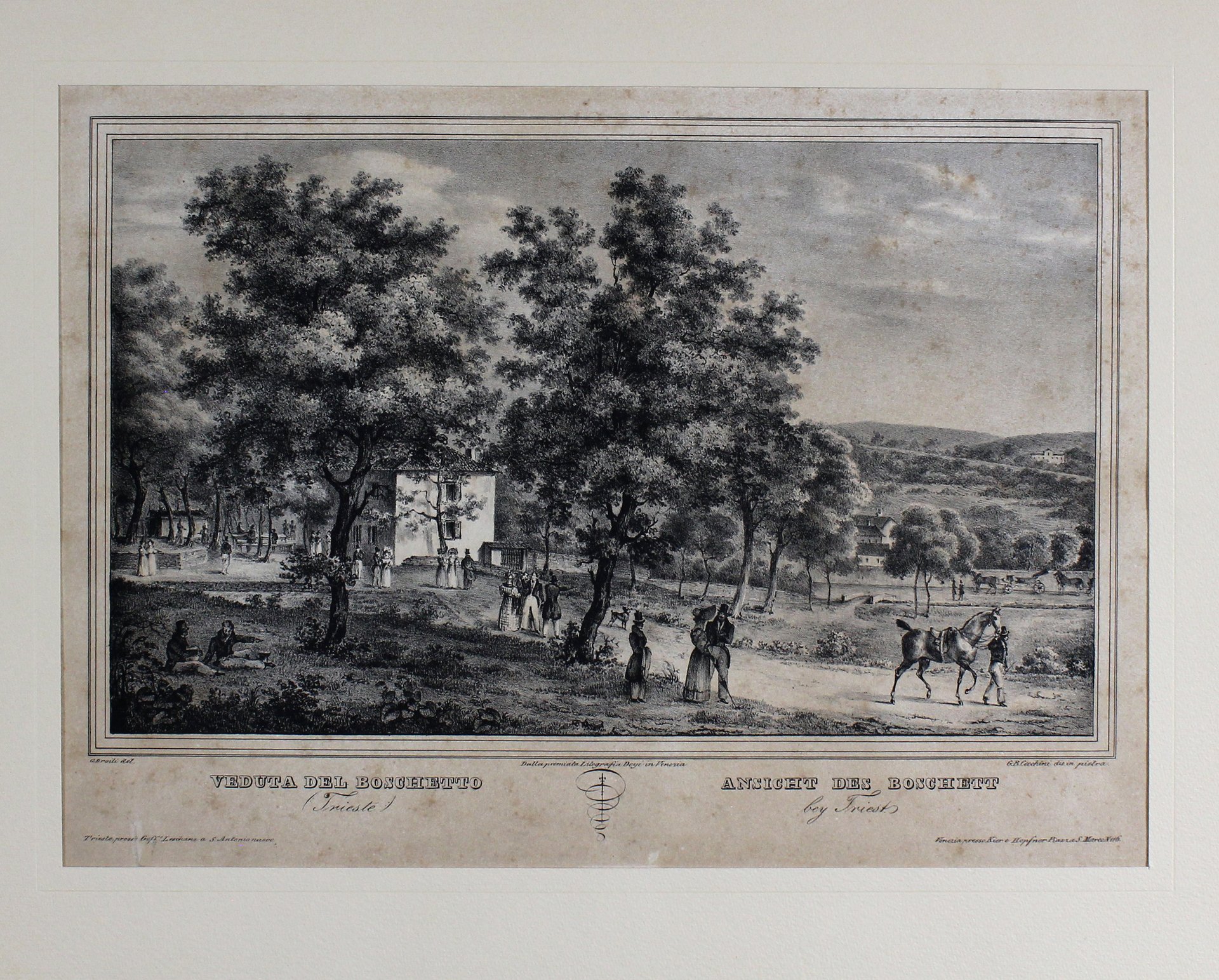 BROILI GIUSEPPE - CECCHINI GIOVANNI BATTISTA. Veduta del Boschetto / Ansicht Des Boschett Bey Triest. - Trieste, presso Goff.o Leschanz a S. Antonio nuovo. - Venezia, presso Kier e Hopfner, Piazza S. Marco, n. 116, 1830 ca.