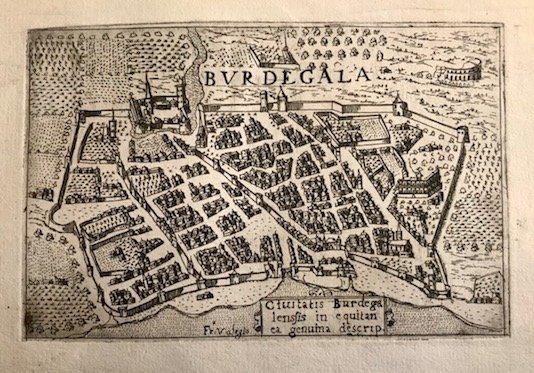 Incisione originale su rame (cm. 13,3x8,8 più ampi margini bianchi) impressa su carta vergellata e firmata sulla lastra dal Valegio. Tratta dall’opera ‘Nuova raccolta di tutte le piu illustri et famose citta di tutto il mondo’ pubblicata da Donato Rasicoti (o Rasciotti o Rascicotti). Esemplare in ottimo stato di conservazione. Molto rara. Francesco Valegio (1560 ca.-1650 ca.) operò quasi esclusivamente a Venezia come pittore, disegnatore, incisore, editore e mercante di stampe. La produzione artistica fu notevole: ritratti, soggetti storici e religiosi, illustrazioni per libri, carte geografiche, piante di città e incisioni di paesaggio. La sua opera calcografica più impegnativa è senz’altro la ‘Raccolta delle più illustri et famose città di tutto il mondo’ alla quale il Valegio contribuì con 112 incisioni mentre altre,fino al numero di 322, sono state eseguite da diversi incisori, tra cui molte da Martino Rota da Sebenico.