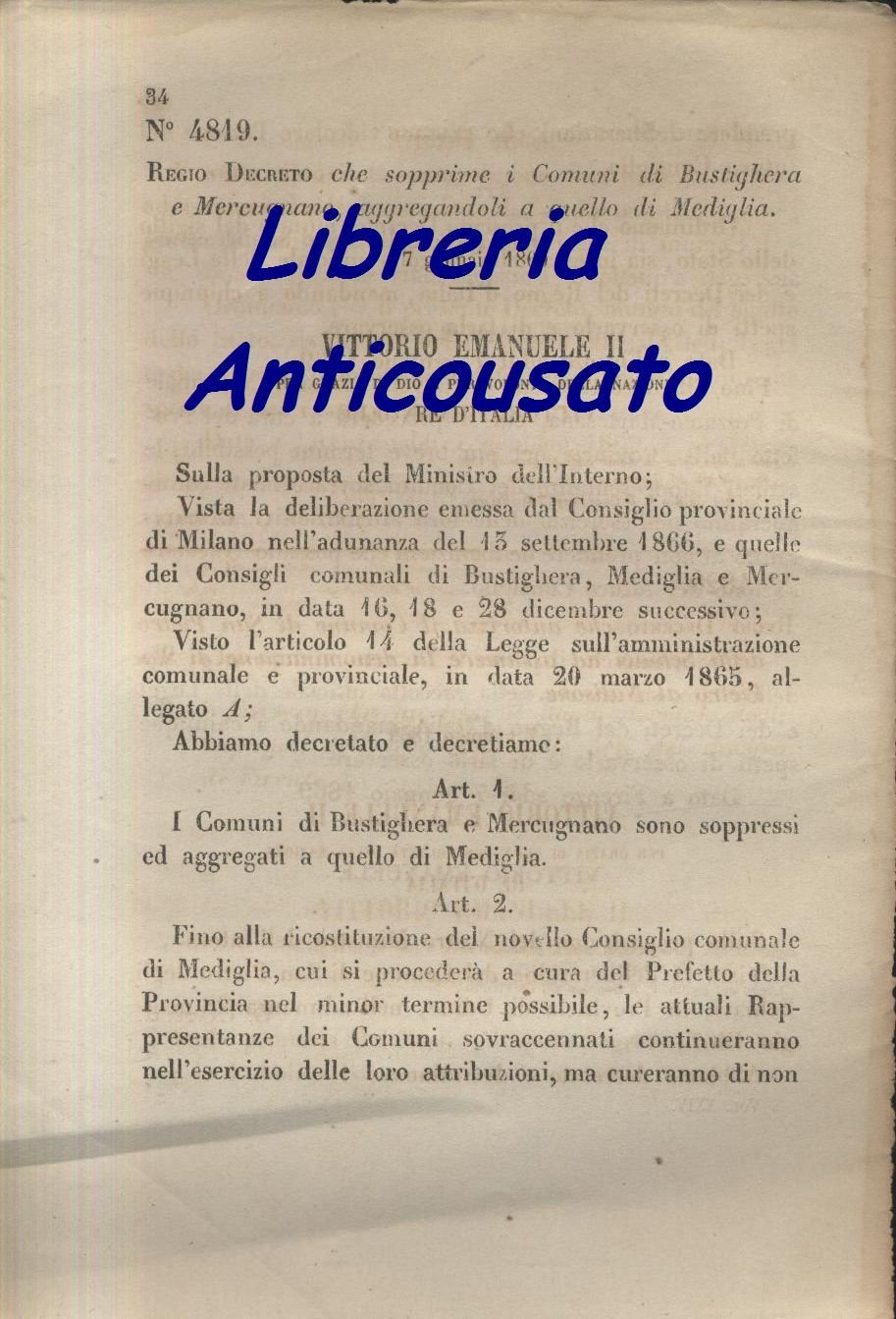 BUSTIGHERA MERCUGNANO REGIO DECRETO 1869 MEDIGLIA SAN PIETRO DEGLI SCHIAVI Antic