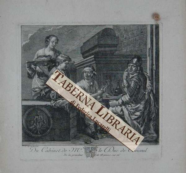 Acquatinta mm. 145x150 alla battuta. pi˘ ampi marg. bianchi. Tratta da un dipinto di C. Du Jardin, della raccolta di dipinti del Gabinetto di Monseigneur le Duc de Choiseul.
