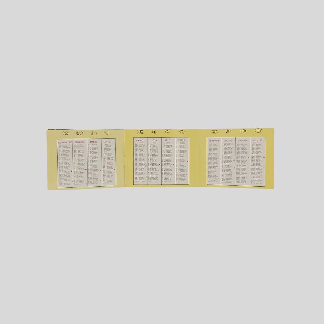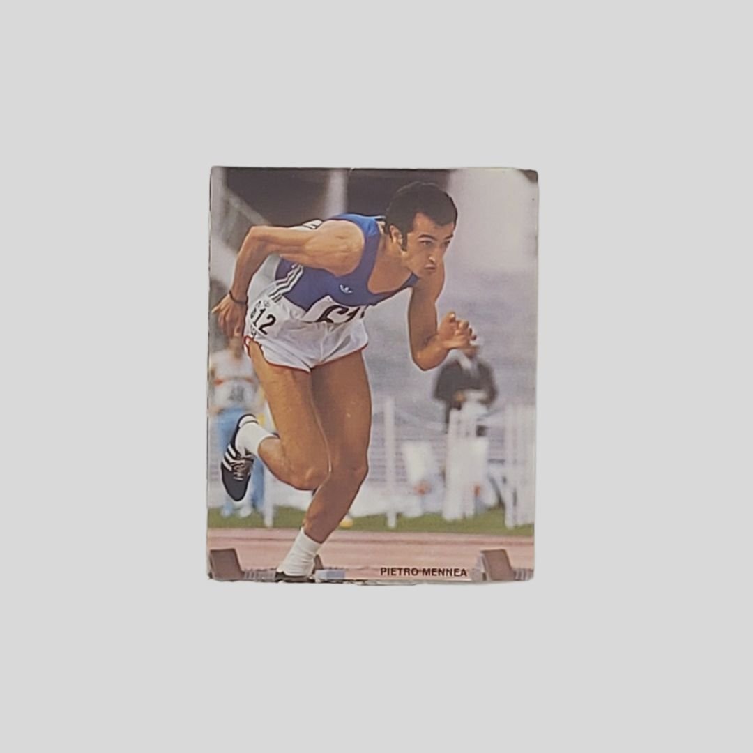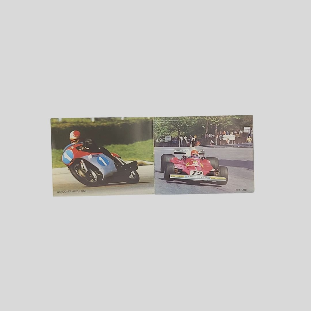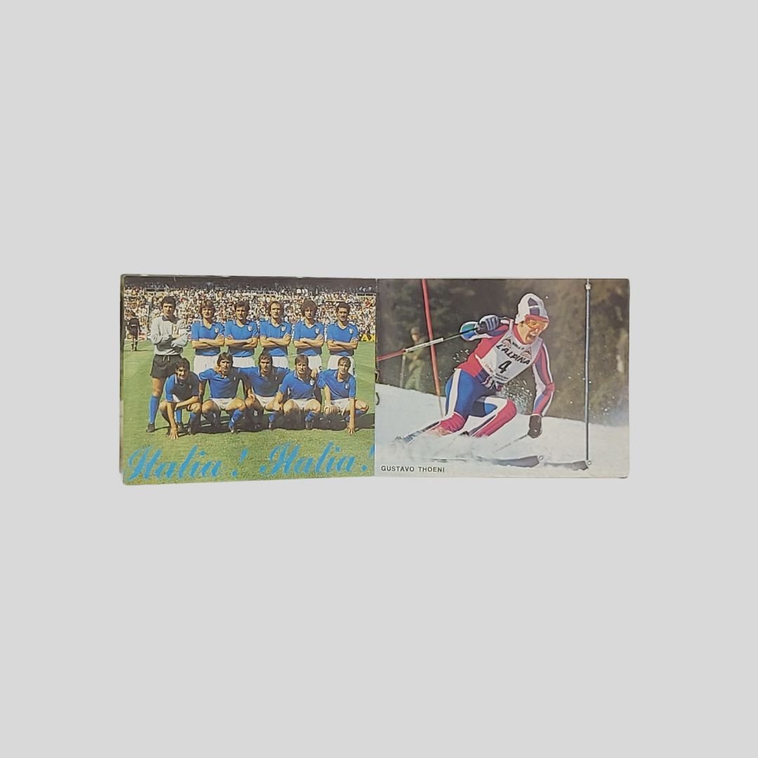 cm 8,5×7 (formato aperto cm 25,5×7). In buone condizioni. I Campioni del Mondo: Francesco Moser; Giacomo Agostini; La Ferrari; La Nazionale di Calcio; Gustavo Thoeni; Pietro Mennea.
