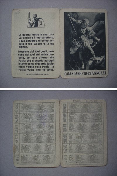 Calendario / calendarietto "1943 Anno XXI" A cura dello Stato Maggiore Regio Esercito (guerra)