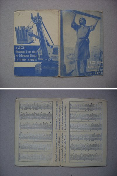 Calendario / calendarietto "BUON ANNO di Cristo Lavoratore 1957" ACLI Associazioni cristiane lavoratori italiani