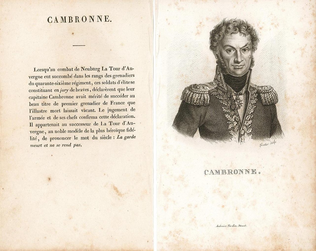 Ritratto del personaggio distintosi nelle vittorie e conquiste militari francesi tra il 1792 e 1815. L'incisione, antica ed originale, è accompagnata da pagina con testo descrittivo del personaggio. Foxing