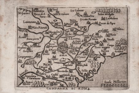 Carta in miniatura preparata per l’edizione italiana dell’Epitome theatri Orteliani, una riduzione delle carte del ' Theatrum Orbis Terrarum ' di Abraham Ortelius, pubblicata per la prima volta ad Anversa da Philip Galle nel 1577 con il titolo di ' Spieghel der werelt ' (Specchio del mondo). Nel 1593, sempre ad Anversa, viene alla luce il ' Theatro del mondo, l’edizione italiana dell’opera curata dal Galle. Nel 1598, Pietro Maria Marchetti, stampa a Brescia il ' Theatro del mondo, edizione “pirata” dell’opera originale del Galle, corredata da 109 mappe fatte incidere copiando le originali. Le carte vengo incise da un anonimo artista e inserite in una pagina di testo in italiano e furono usate anche per illustrare le "Relationi universali di Giovanni Botero", pubblicato sempre in Brescia nel 1599. È nota anche una ristampa delle stesse ' Relationi, pubblicata da Alessandro Vecchi a Venezia nel 1618 e ancora nel "Theatro del mondo" di Giovanni M. Turrini, (1655), e Scipione Banca (1657); queste due ultime edizioni recano il testo descrittivo al verso della carta. Esemplare dall'edizione del 1655 curata da Giovanni M. Turrini. Incisione in rame, in ottimo stato di conservazione. Rara. Bibliografia G. King, ' Miniature Antique Maps, ' pp. 78-79. Miniature map prepared for the Italian edition of the ' Epitome theatri Orteliani, ' a reduction of the maps of Abraham Ortelius' ' Theatrum Orbis Terrarum, first published in Antwerp by Philip Galle in 1577 under the title ' Spieghel der werelt (Mirror of the World). In 1593, also in Antwerp, the ' Theatro del mondo, ' the Italian edition of the work edited by Galle, came to light. In 1598, Pietro Maria Marchetti, printed in Brescia his ' Theatro del mondo, a "pirate" edition of Galle's original work, accompanied by 109 maps made by copying the originals. The maps were engraved by an anonymous artist and inserted into a page of Italian text and were also used to illustrate Giovanni Botero's "Relationi universali" also published in Brescia in 1599. A reprint of the same ' Relationi ' is also known, published by Alessandro Vecchi in Venice in 1618 and again in Giovanni M. Turrini's "Theatro del mondo" (1655), and Scipione Banca (1657); the latter two editions bear the descriptive text on the verso of the map. Map taken from ' Giovanni M. Turrini's "Theatro del mondo" (1655). Copperplate engraving, in very good condition. Rare. Bibliografia G. King, ' Miniature Antique Maps, ' pp. 78-79. Cfr.