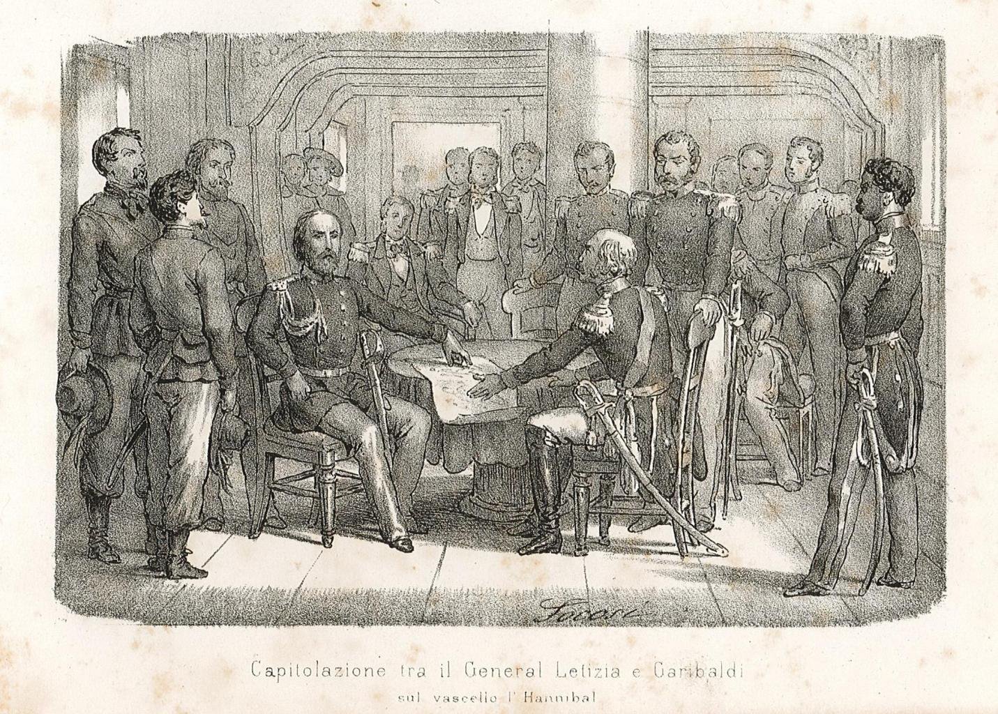 Capitolazione tra il General Letizia e Garibaldi sul vascello lì Hannibal