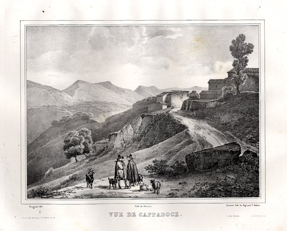 CAPPADOCIA - "Vue de Cappadoce" Coignet del. - Jacottet Lith. Bello scorcio paesaggistico con le case sulla destra.
