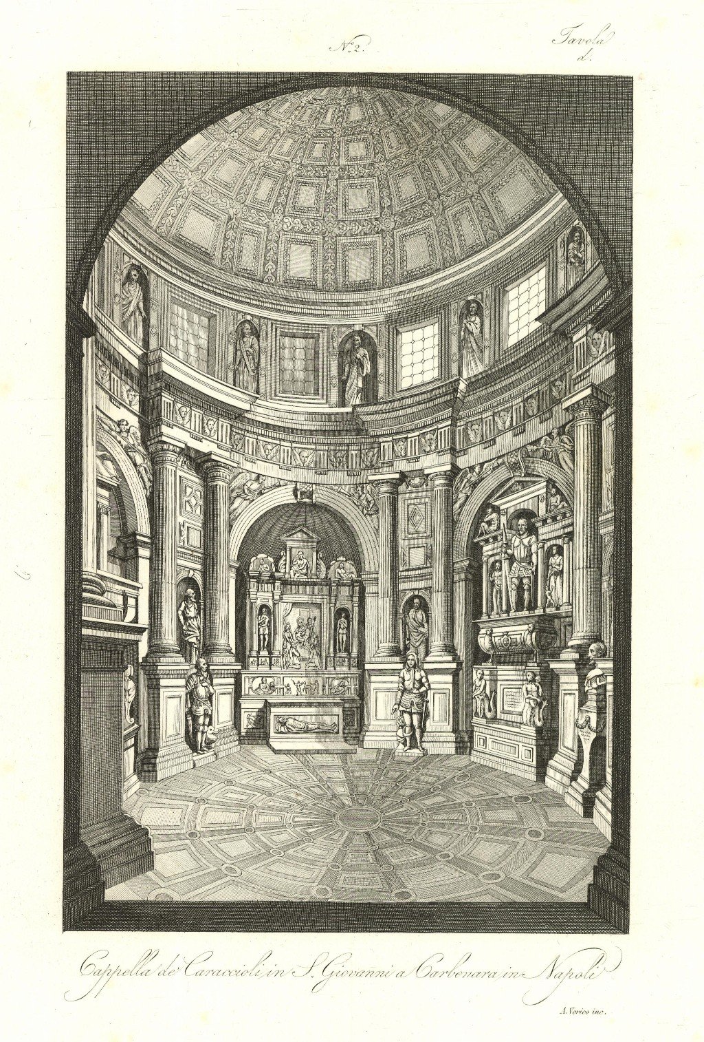 Veduta interna della Cappella de' Caraccioli. Stampa antica originale
