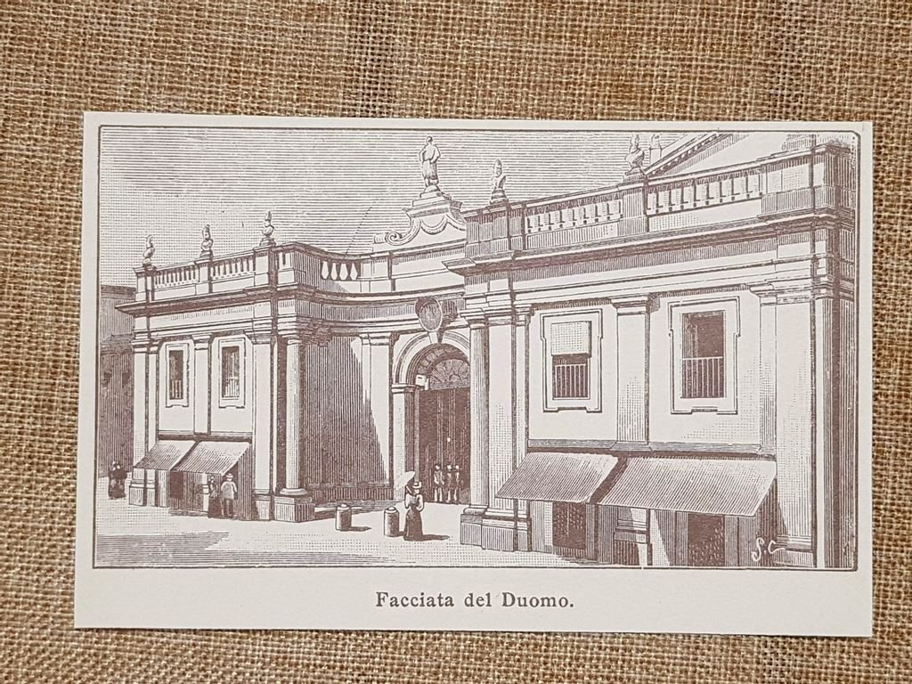 Rara stampa estratta da pubblicazione di fine '900 Capua nell'800 Facciata del Duomo Caserta Campania Dimensioni Cm 13,00 x 8,00 Codice prodotto: LCCI - 028 PayPal Carta di credito Bonifico bancario Inserita dentro plico di adeguate dimensioni per proteggerne l'integrità Spedizione con posta ordinaria o raccomandata scelta dall’Acquirente nel momento del pagamento Clicca qui per accedere al nostro Store ed al suo sterminato archivio