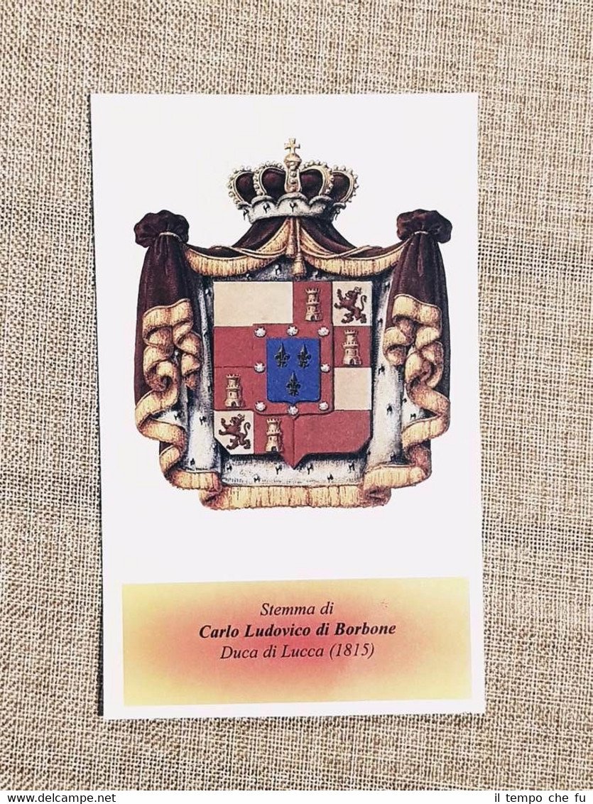 Carlo Ludovico di Borbone e Casa d'Este Modena Famiglia nobile Stemma Nobiltà Rara stampa estratta da pubblicazione della fine del '900Carlo Ludovico di Borbone, Duca di Lucca e Casa d'Este, Duchi di Modena Famiglie nobili StemmiEstrazione dall'Annuario della nobiltà italiana e Giornale araldico genealogico diplomaticoCodice articolo: S.I.-025Dimensioni fronte/retro: Cm 9,00 x 15,00 + Cm 9,00 x 15,00
