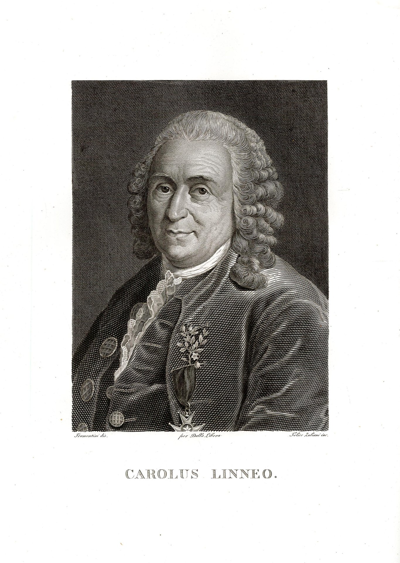 Incisione in rame, antica ed originale, raffigurante il ritratto il ritratto di Carlo Linneo. In allegato pagine descritte da Cesare Arici su l'illustre personaggio. Autore: Tramonitini dis & Felice Zuliani inc. Luogo: Carlo Linneo. Anno: 1823. Tecnica: incisione in rame. Dimensioni: 330x230 il foglio mm