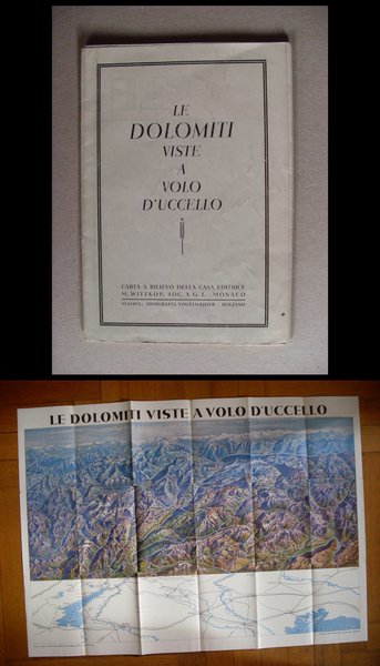 Carta a rilievo "LE DOLOMITI VISTE A VOLO D´UCCELLO" Editrice wittkop MONACO - Tipografia Vogelweider BOLZANO.Anni´30