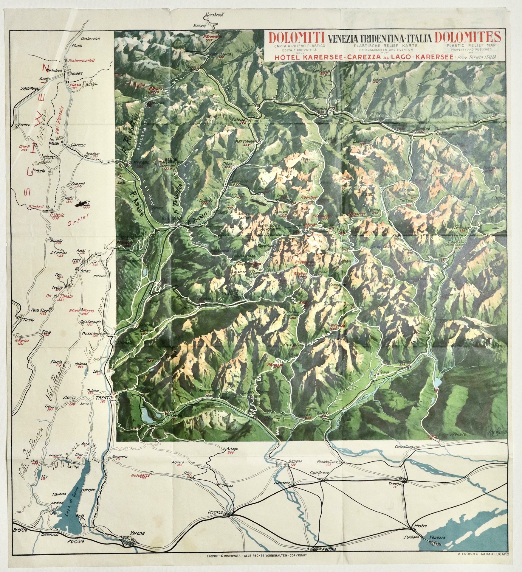 Carta a rilievo plastico edita e proprietà dell'hotel Karersee-Carezza al lago-Karersee | Stampe | RUEP JOSEPH