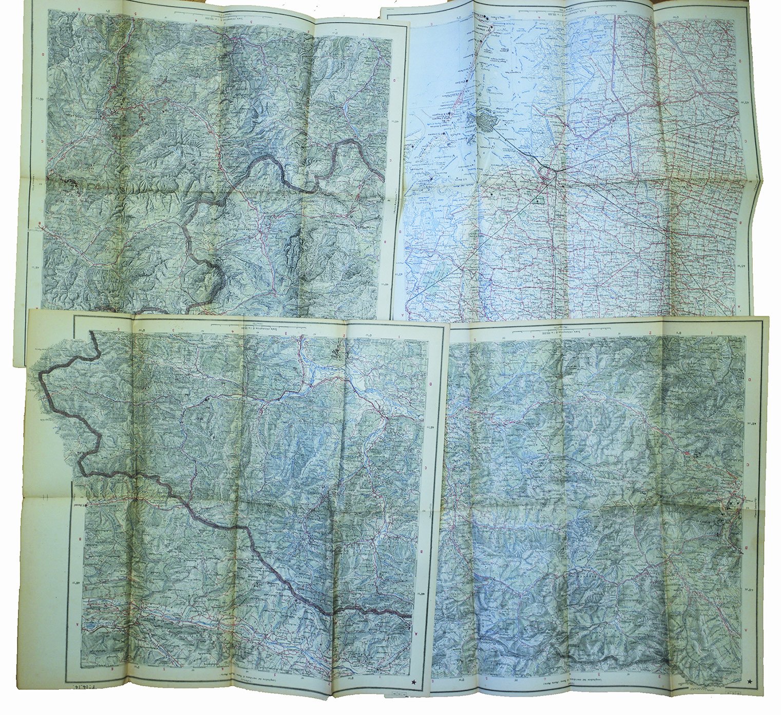 Offriamo un lotto di 21 cartine topografiche a colori, di cm. 41 x 42 ciascuna (con al verso spiegazione delle abbreviazioni e traduzione delle denominazioni straniere più usate: tedesco e slavo meridionale), così composto:1) Foglio 12 - Pieve di Cadore2) Foglio 13 - Ampezzo3) Foglio 14-14bis - Pontebba4) Foglio 22 - Feltre5) Foglio 23 - Belluno6) Foglio 24 - Maniago7) Foglio 25 - Udine8) Foglio 26 - S. Pietro al Natisone9) Foglio 37 - Bassano10) Foglio 38 - Conegliano11) Foglio 39 - Pordenone12) Foglio 50 - Padova13) Foglio 51 - Venezia14) Foglio 52 - S. Donà di Piave15) Foglio 53 - Foce del Tagliamento16) Foglio 64 - Rovigo17) Foglio 65 - Adria18) Foglio 76 - Ferrara19) Foglio 77 - Comacchio20) Foglio 87 - Bologna (con lieve alone)21) Foglio 88 - Imola.Esemplari ben conservati. .