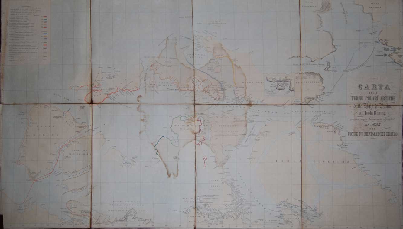 CARTA DELLE TERRE POLARI ARTICHE. - Dalla baia di Baffin all'isola di Baring. Corretta sopra documenti ufficiali al 1853 dal conte Miniscalchi Erizzo.