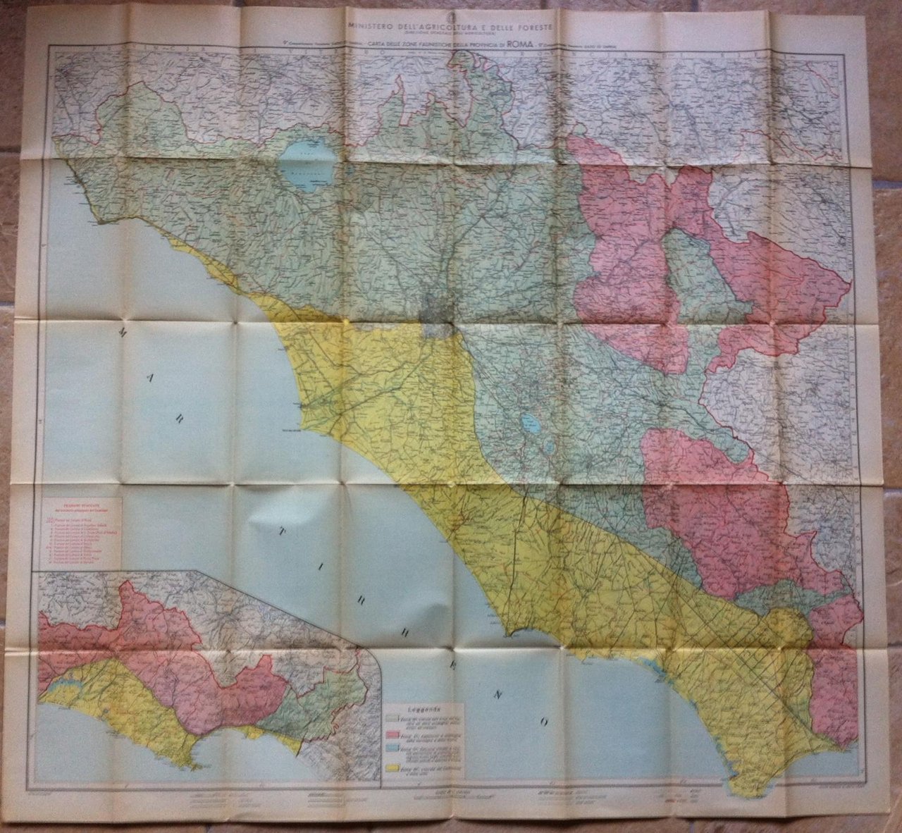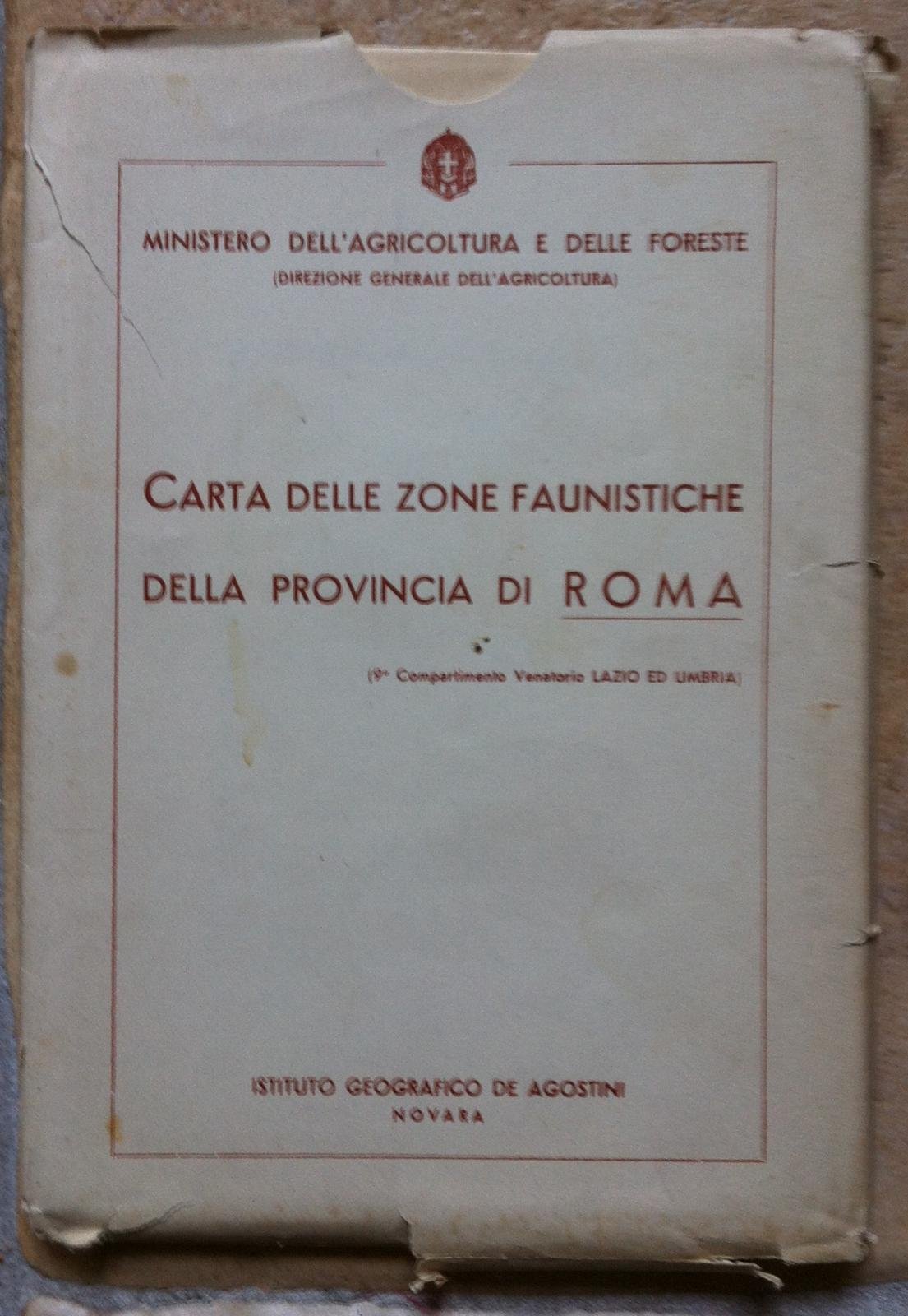 CARTA DELLE ZONE FAUNISTICHE DELLA PROVINCIA DI ROMA 1°COMPARTIMENTO VENATORIO LAZIO ED UMBRIA MINISTERODELL'AGRICOLTURA E DELLE FORESTE, DIREZIONE GENERALE DELL'AGRICOLTURA. NOVARA ISTITUTO GEOGRAFICO DE AGOSTINI, [19.] A COLORI CM 86 X 92 SUL VERSO CARTA DELLE ZONE FAUNISTICHE DEL REGNO D'ITALIA IN BUSTA L2874