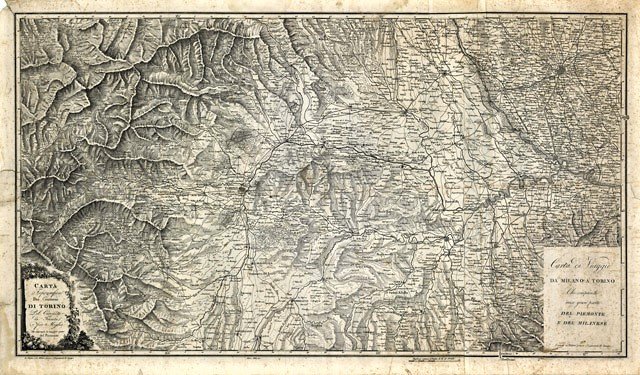 Carta di Viaggio da Milano a Torino che comprende una gran parte del Piemonte e de milanese