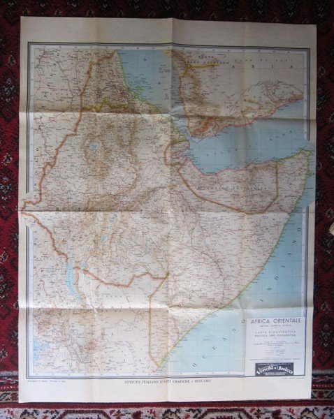 Carta dimostrativa politica oro - idrografica AFRICA ORIENTALE Eritrea - Somalia - Etiopia