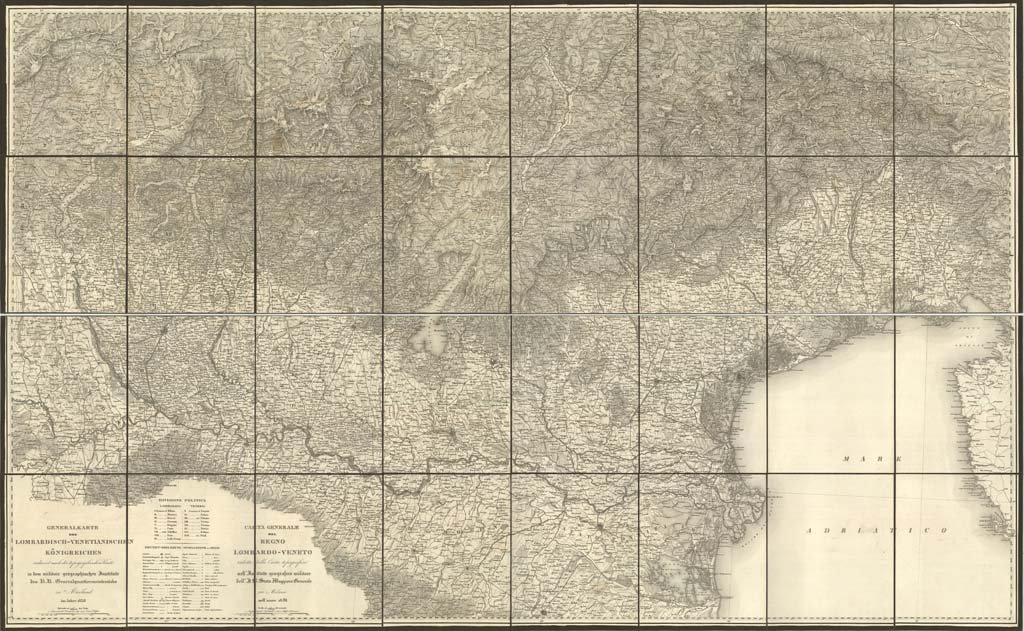 CARTA GENERALE DEL REGNO LOMBARDO-VENETO RIDOTTA DALLA CARTA TOPOGRAFICA NELL’ISTITUTO GEOGRAFICO MILITARE DELL’ I.R. STATO MAGGIORE GENERALE