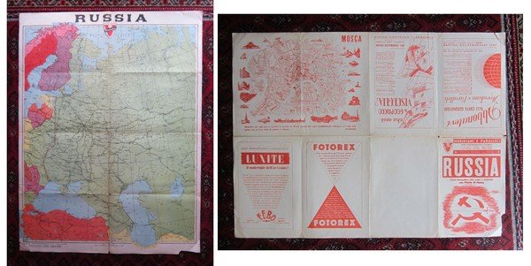 Carta Geografica alla scala 1:5.250.000 RUSSIA con Pianta di MOSCA. Meridiani e Paralleli Ente Toponomastico Italiano