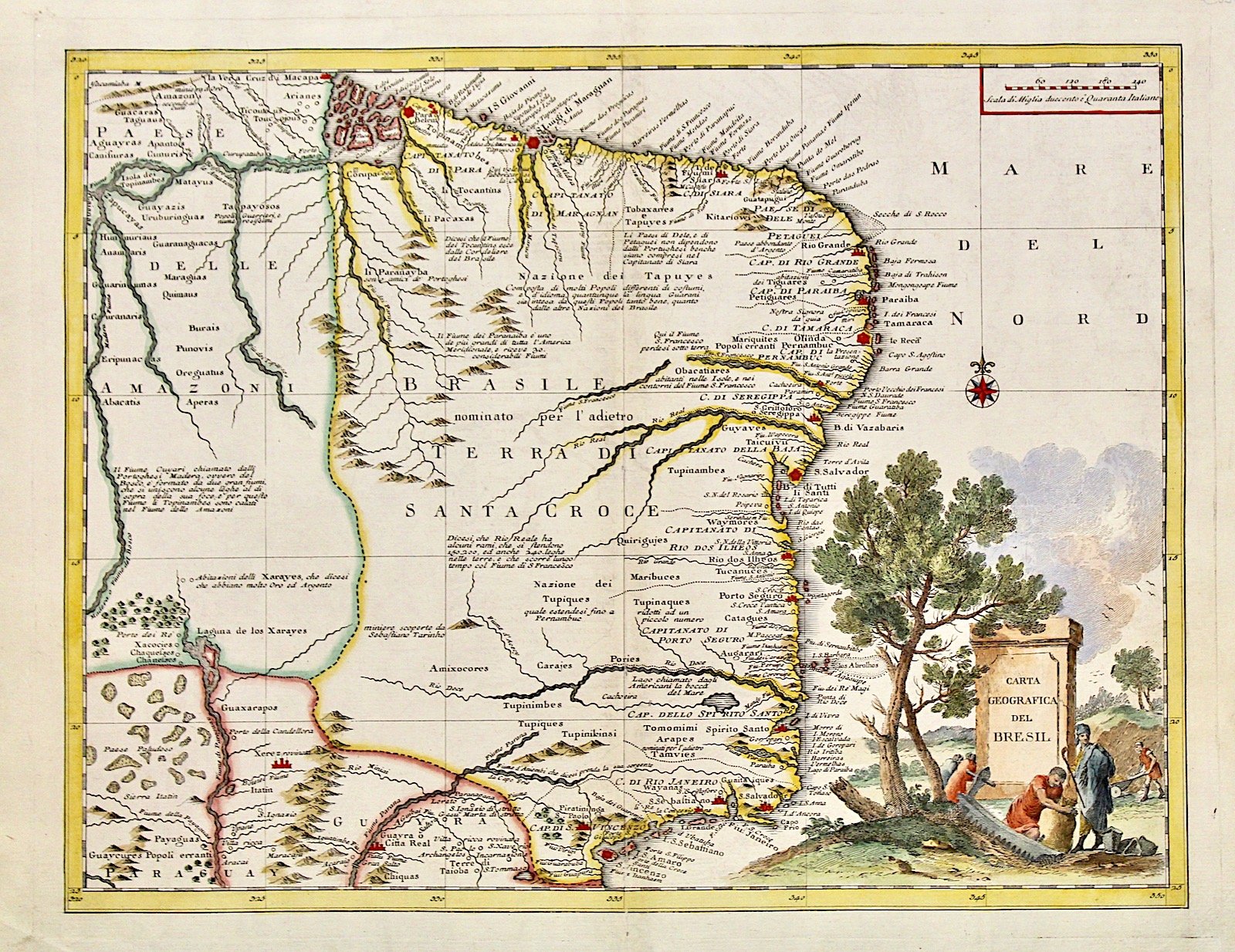 Incisione in rame, di mm 345x450 dipinta a mano. Bella carta con bel cartiglio figurato. Tratta da "Atlante novissimo". Ottimo esemplare, con qualche piccolo strappo restaurato al margine inferiore.<BR><BR>