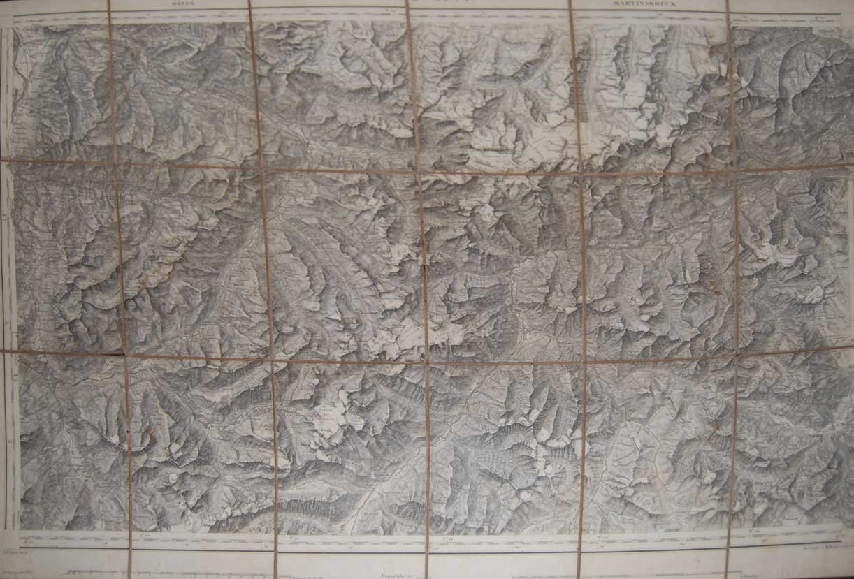 Cm. 76x55, Carta geografica raffigurante parte delle Alpi svizzere, telata, divisa in 18 riquadri. In buono stato (good copy).