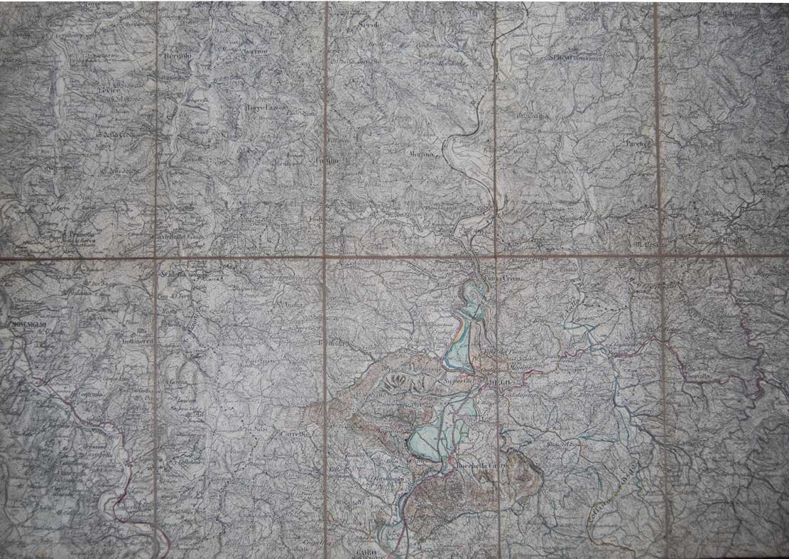 Cm. 54x39, carta geografica di parte della Province di Alessandria e Savona, telata, divisa in 10 riquadri. In buono stato (good copy).