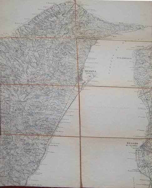 Cm. 39x56, Carta geografica raffigurante lo stretto di Messina, telata, divisa in 8 riquadri. Tracce d’uso, peraltro in buono stato (good copy).