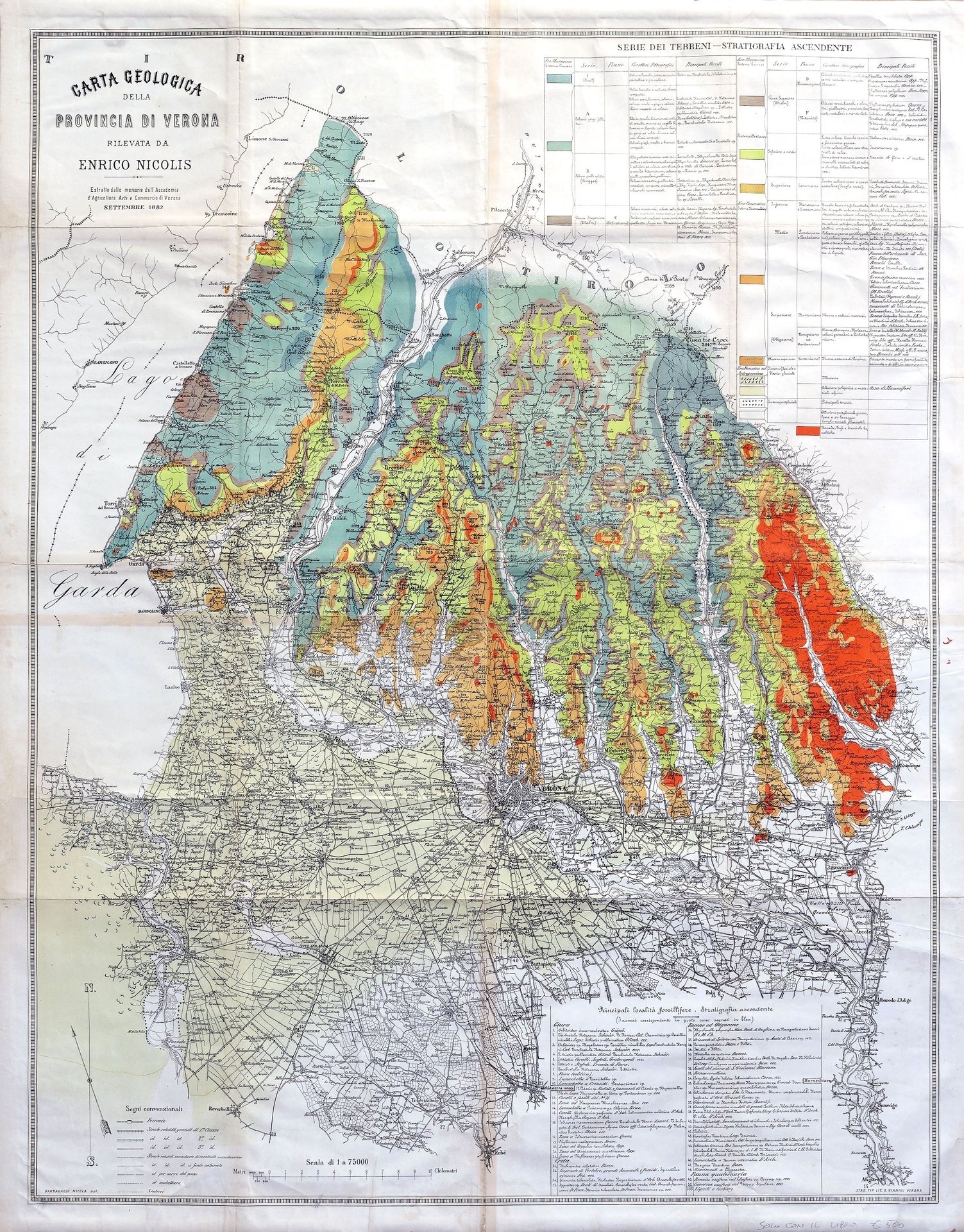 Carta geologica della provincia di Verona esrtatto dalle memorie dell'Accademia d'Agricoltura, Arti e Commercio di Verona