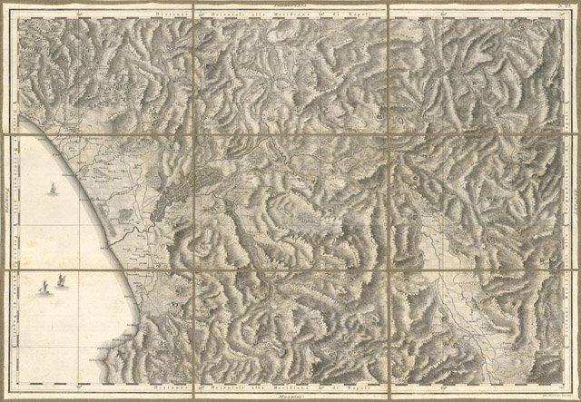 Carta geografica montata su tela a stacchi, comprendente il territorio delle province di Salerno e Potenza. Foglio n° 19. Acerno, Campagna, Muro, Pesto, Capaccio, La Sala, Marsico.