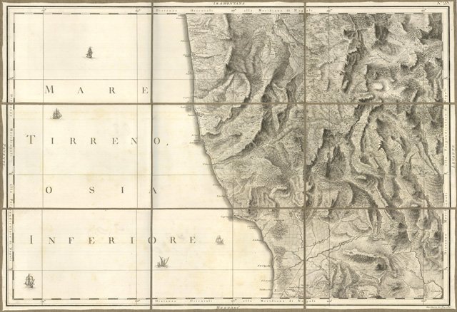 Carta geografica montata su tela a stacchi, comprendente il territorio di Cosenza e Catanzaro. Foglio n° 28. Cosenza, Martonaro, Nocera, Nicastro, Catanzaro.
